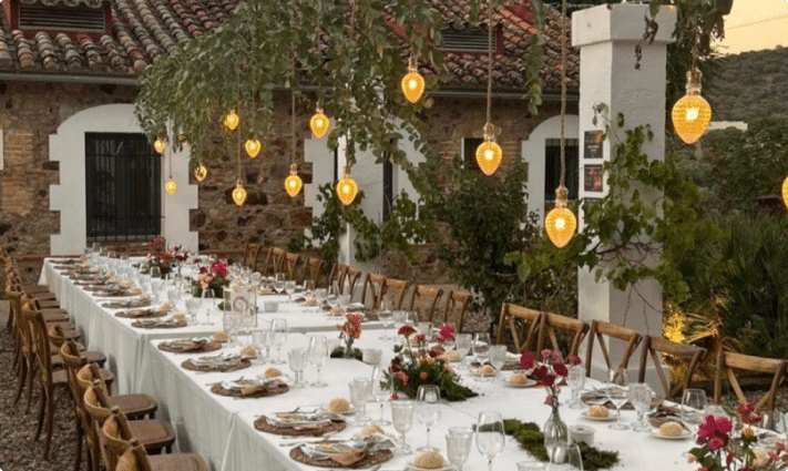 Diseñamos iluminación decorativa que transforma espacios y crea ambientes elegantes, acogedores y con personalidad. Cada proyecto se adapta al estilo de la celebración para potenciar la experiencia visual desde el primer momento.